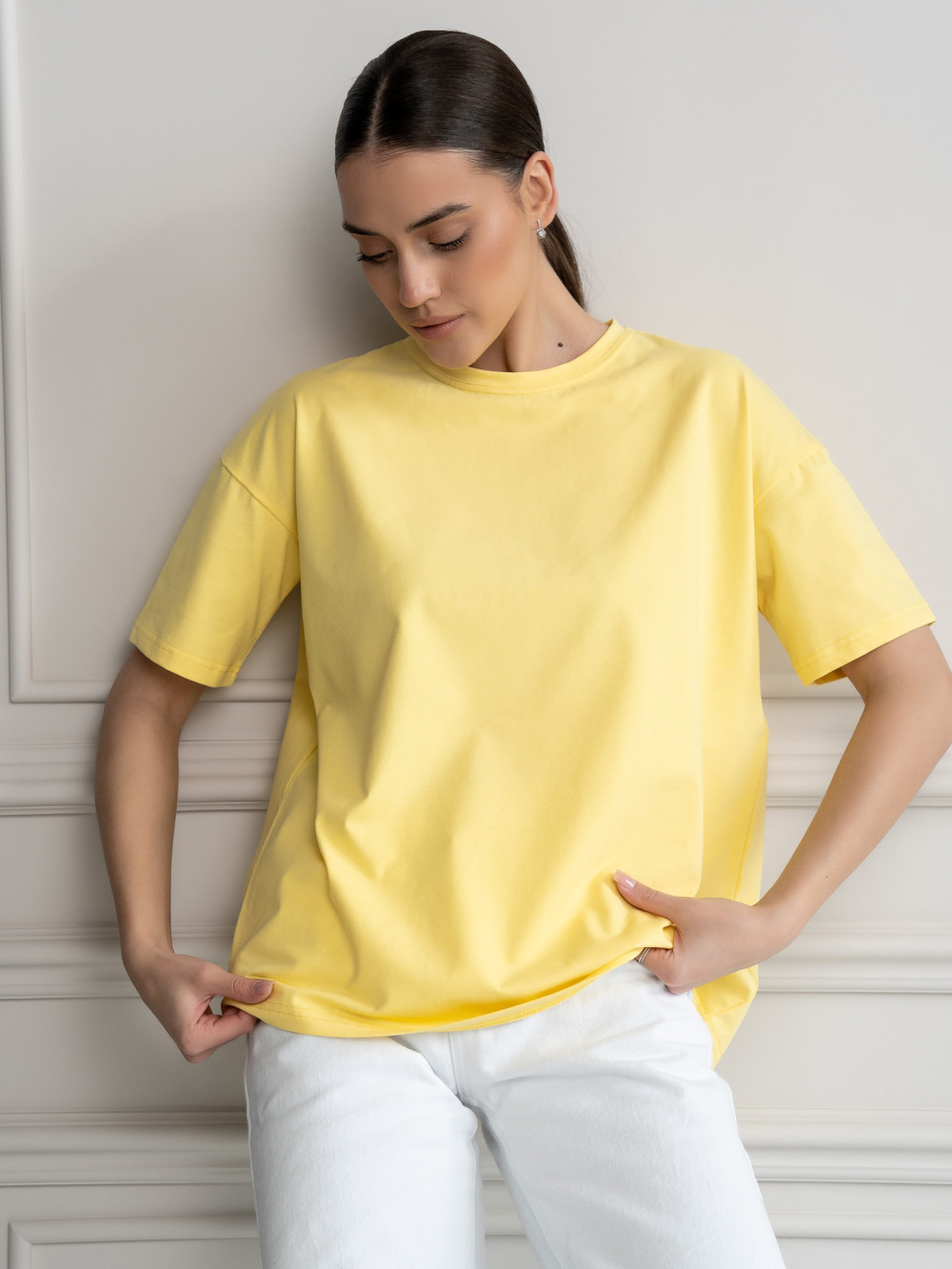 Футболка оверсайз из приятного к телу плотного трикотажа. Удобный, свободный крой позволяет сочетать её с джинсами, брюками и шортами. Прекрасно подойдет и для дома и для ежедневных образов в спортивном стиле. Модель унисекс, легко создавайте парные образы с вашими близкими.